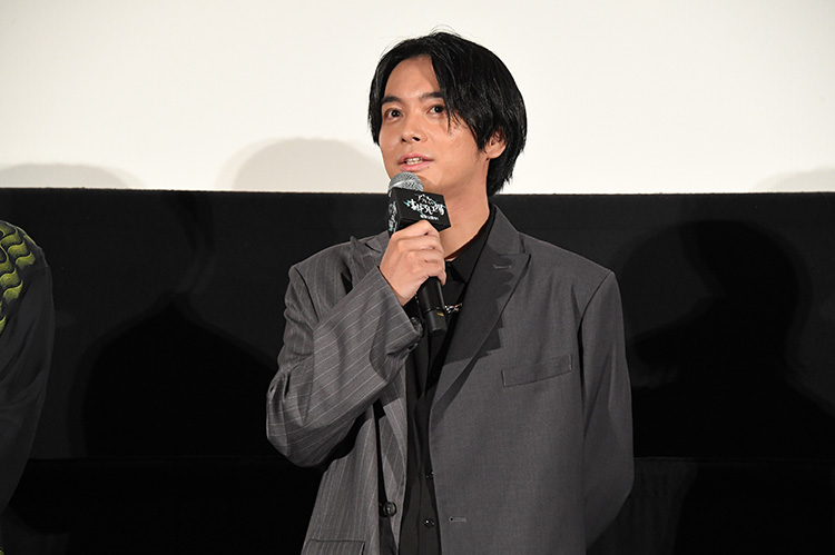 正宗の叔父である時宗を演じた林遣都は、「観客皆さんの食い気味の拍手から、すごい映画なんだなと確信しました」と観客の熱量の高さに驚きを見せました。アフレコ収録の体験を聞かれると、「まだ全部の画が見えていない状況で演じるのは難しかった」と苦労を明かしつつも、演じた時宗の魅力を「守りたいものの為だったり、貫きたい信念の為に、自分を犠牲にして行動するところ」と語りました。
