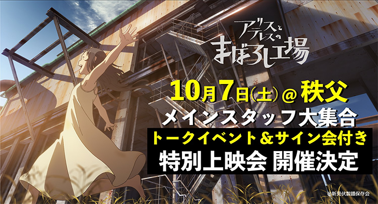 岡田麿里監督の故郷・秩父に、本作の脚本・監督の岡田麿里さん、副監督の平松禎史さん、キャラクターデザインの石井百合子さん、美術監督の東地和生さんの4名が集結!武甲山の麓にあるユナイテッド・シネマ ウニクス秩父にて、本作を創り上げたメインスタッフによるトークイベント付きの特別上映会の開催が決定いたしました!さらに、なんとトークイベント終了後には、劇場ロビーでご登壇4名によるサイン会の実施も決定!トークイベント&サイン会のスペシャルな企画に是非ご参加ください。